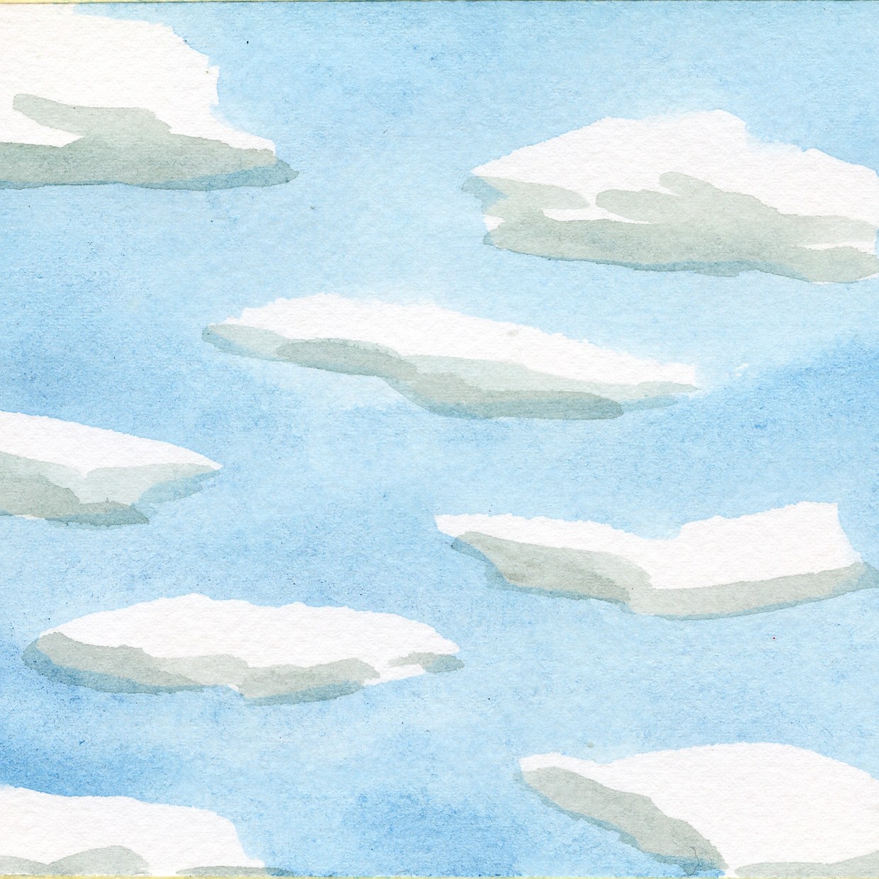 Poi compariamo le tecniche, rendiamo esperti la mano e l’occhio, cerchiamo di aggiungere delle sperimentazioni al nostro bagaglio di conoscenza per avere una capacità di costruire più consapevole per il futuro. Usiamo il colore a tempera acquerellato o l’acquerello stesso, lavoriamo per trasparenza dal bianco. A questo punto, le nuvole dovranno essere lasciate bianche, cioè si dovrà vedere il foglio. In un secondo momento, con una velatura grigiastra, scuriremo le zone in ombra della nuvola: questo esercizio comparato, di due tecniche (a corpo e per velature), ci aiuterà a capire la fisicità del colore, ad entrare nel merito delle possibilità tecniche che la materia pittorica offre e delle differenze espressive nell’affrontare un soggetto analogo con tecniche diverse . Vale la pena fermarsi, mettere tutti i disegni su un tavolo, se possibile, o appenderli, guardarli e ragionarci: si interiorizzerà un’esperienza che sarà utile per il futuro.