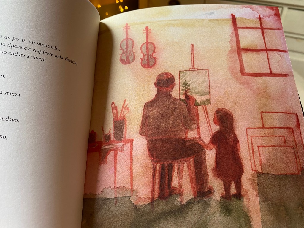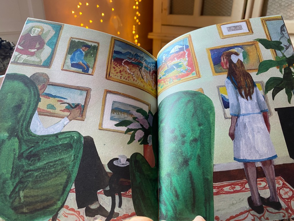 Per una che ha il tarlo delle artiste, oggi è una gioia. Ho due nuovi amori Sara Lundberg e Berta Hanssen. Così immagino la Sara illustratrice e la sua gioia nell’avere fatto questo libro che racconta quella che forse è la sua pittrice dell’anima: svedese e donna come lei. Mi incanta la ricerca che ci deve essere dietro questo lavoro, sono i dettagli a dirlo. L’appendice finale di una giovane giornalista svedese che ci tratteggia la vita di Berta e il suo contesto, con sintesi profonda e incisiva; poi, ancora, l’elenco delle fonti da cui si scopre, con grande meraviglia, che esiste un diario di Berta, privato, ma che Sara ha cercato e consultato. E immagino l’emozione nell’averlo letto. Si viene a conoscenza, tra le varie referenze, anche di un libro di Berta in sola lingua svedese: I miei bambin. Diario di una scuola di campagna. Già, perché Berta, grazie all’intervento quasi fatato di una figura fondamentale (oltre a quello iniziatico di uno zio contadino e pittore), il medico di famiglia , riuscirà a prendere consapevolezza della propria identità, a combattere per quello che lei sente di diritto debba avere, a lasciare la realtà rurale e famigliare, a cui sembra che le donne del suo ambiente siano immancabilmente destinate, ma… per studiare come maestra, non come artista! Su questo, il padre l’avrà vinta: se ne potrà andare dalla campagna d’origine, ma dovrà imparare un mestiere solido e concreto. Lei sarà, nella sua vita, una maestra artista e sarà la scuola il luogo in cui “verrà scoperta”, proprio grazie ad un ritratto fatto a uno dei suoi bambini. I bambini erano tra i suoi soggetti preferiti, li dipingeva nelle ricreazioni. E poi la pittura era nel fine settimana, nel tempo libero.