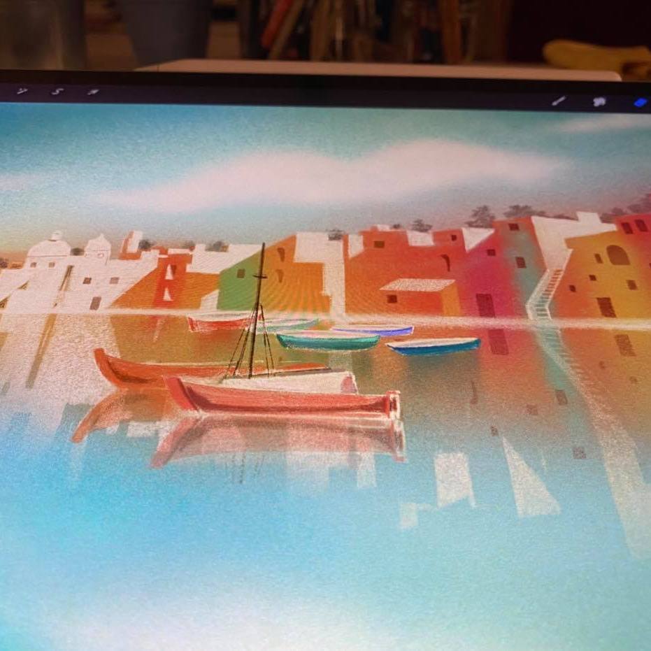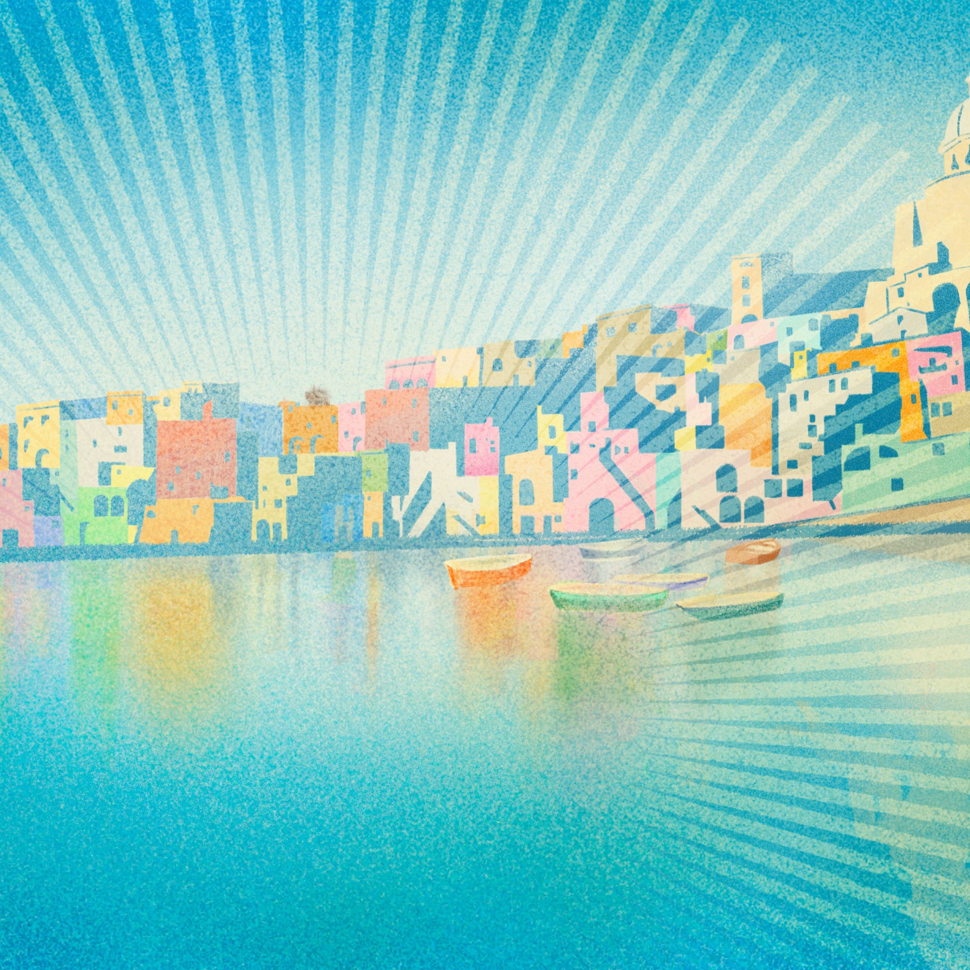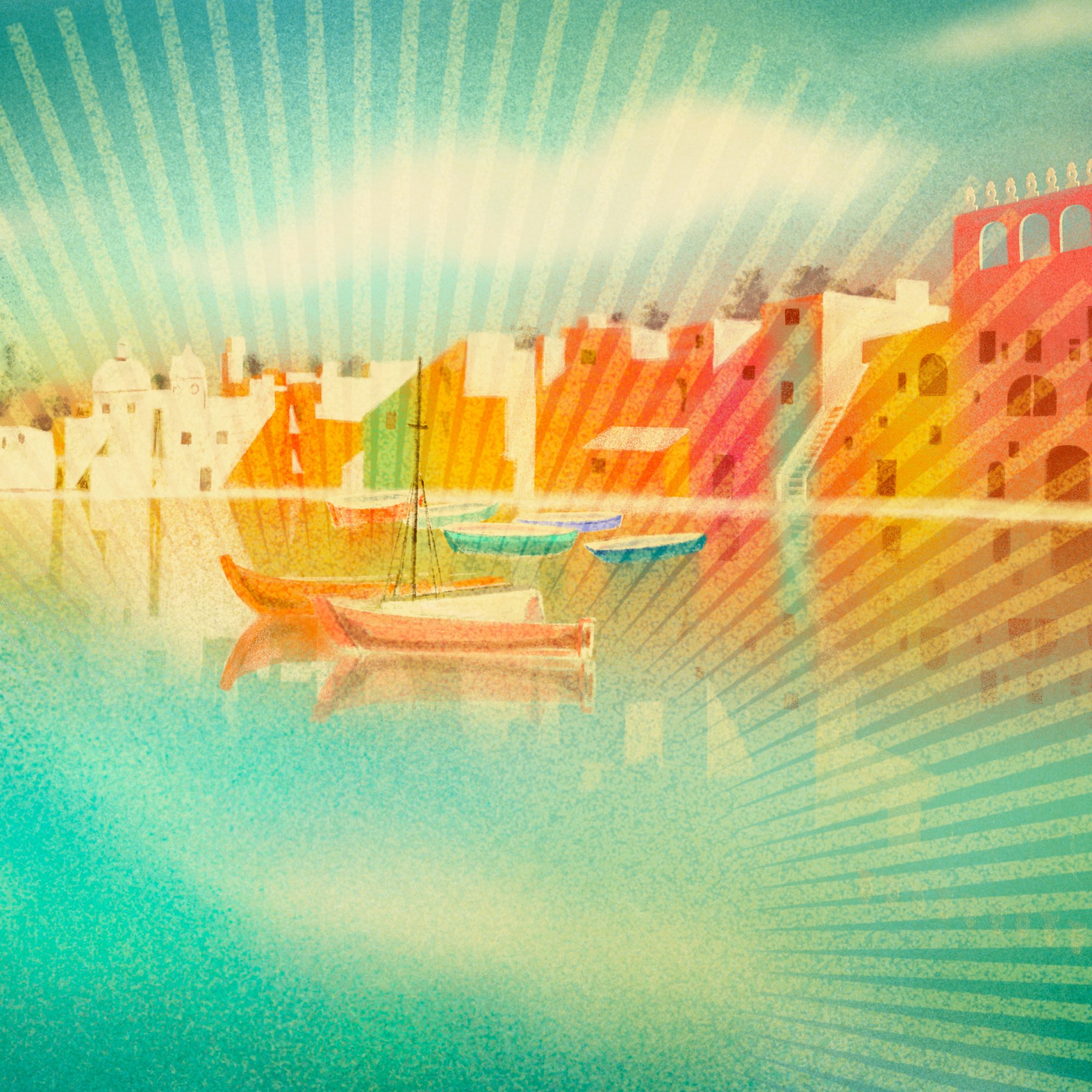 Due illustrazioni, con dettagli di limoni e di dolci tipici dell’isola, Frollicella e Lingua, per il packaging rinnovato della pasticceria Dal Duca di Procida.