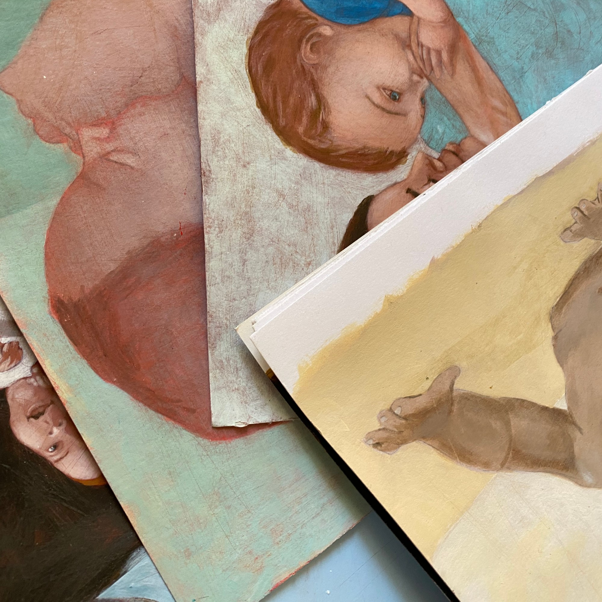 Le tavole sono realizzate interamente ad acrilico su carta Pescia di Magnani, in questo momento una carta non più reperibile purtroppo, e sono state realizzate così da adattarsi alla versione albo illustrato e alla versione kamishibai, presto reperibile. Solo un paio di tavole sono state poi ritoccate in photoshop.
