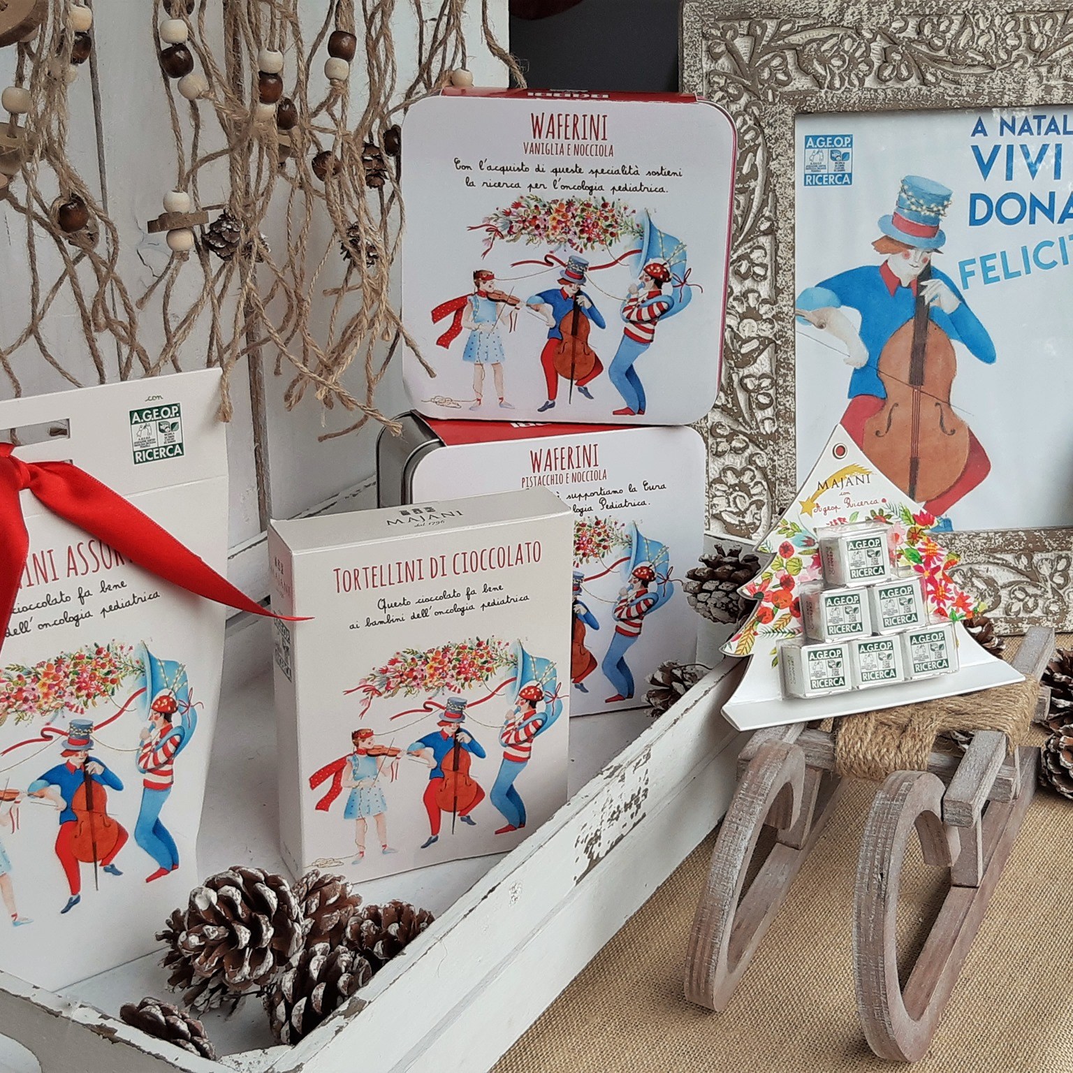 Una mia illustrazioni per il packaging dei prodotti natalizi di Ageop ricerca.