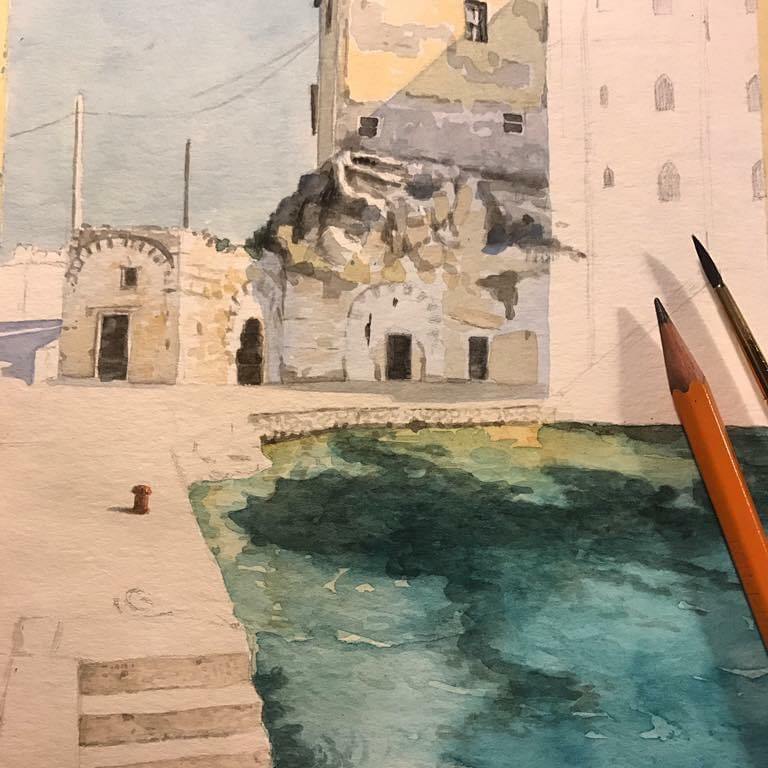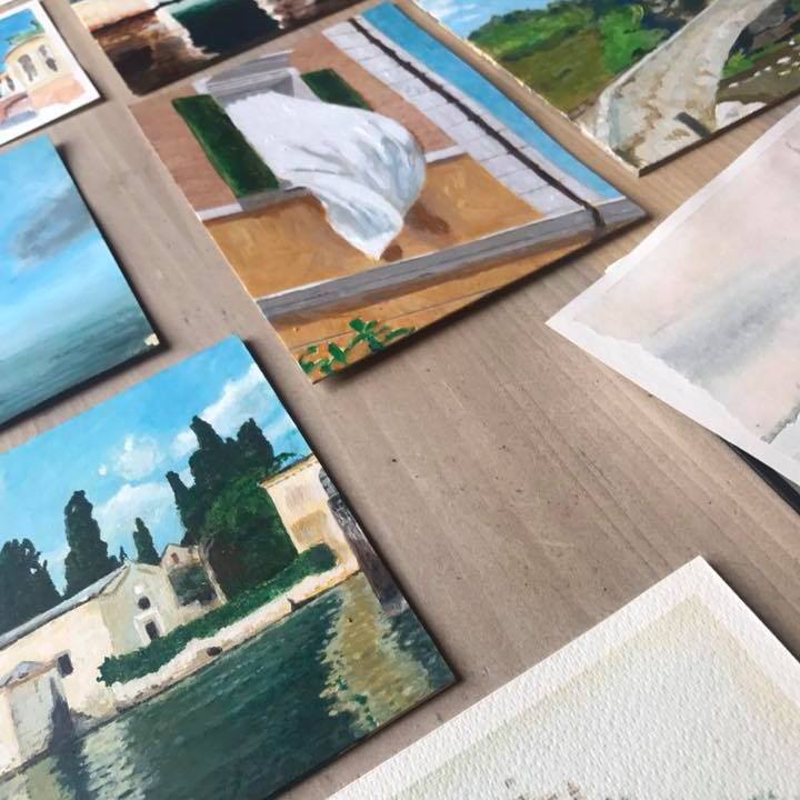 Un tour ipotetico, tra acquerelli dei miei taccuini, da viaggi reali, e dipinti nuovi ad acrilico su cartone, da viaggi futuri.